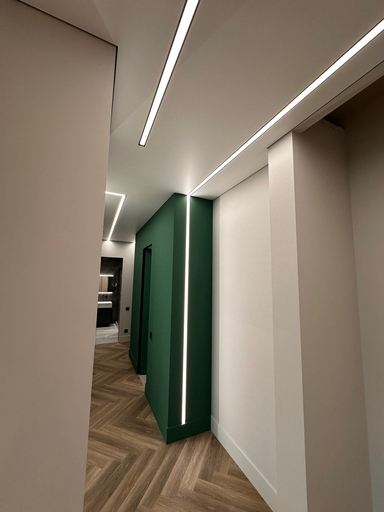 Дизайнерские натяжные потолки со световыми линиями в коридоре