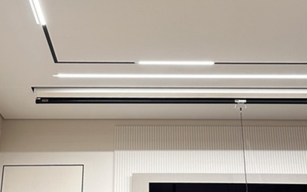Расчёт цены потолка с трековой системой SLOTT в гостиной